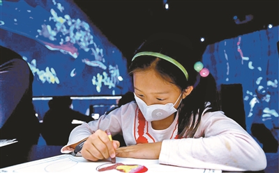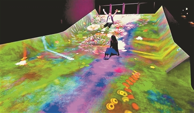 為了讓來看展的孩子們也有收獲,北京無相藝術(shù)空間用二層打造了親子互動(dòng)區(qū),將“運(yùn)動(dòng)森林”和“共創(chuàng)!未來園”兩大主題放到了一起。“運(yùn)動(dòng)森林”是一個(gè)可以讓你在復(fù)雜且立體的空間里,用強(qiáng)大的身體運(yùn)動(dòng)機(jī)能將身體完全沉浸到互動(dòng)中的世界。“共創(chuàng)!未來園”則是一個(gè)以“共創(chuàng)”為概念的教育項(xiàng)目,觀眾在共創(chuàng)空間畫畫,將自己的繪畫作品掃描,上傳到共創(chuàng)未來園的《彩繪海洋》,馬上你畫的一條魚、一只小烏龜就可以閃現(xiàn)在大屏幕的海洋里,你的作品也可以成為藝術(shù)展的作品之一,你也成為“數(shù)字藝術(shù)家”。