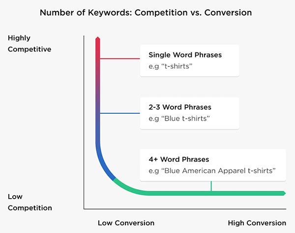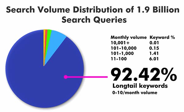 我們這樣想:你使用的目標(biāo)關(guān)鍵詞每月會帶來100位搜索者,但其中只有一個搜索者真正成為客戶。然而,長尾關(guān)鍵詞每月只帶來10位搜索者,但這些搜索者都在尋找確切的產(chǎn)品或服務(wù)。這意味著長尾關(guān)鍵詞的轉(zhuǎn)化率是短尾關(guān)鍵詞的10倍。