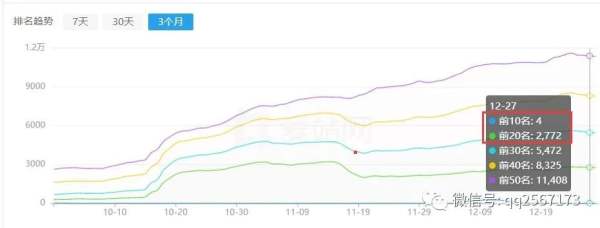 前二十名有2772個,但是前十名卻只有4個詞,是不是很奇葩?這在過去根本是不可能的,完全不符合優化邏輯的!