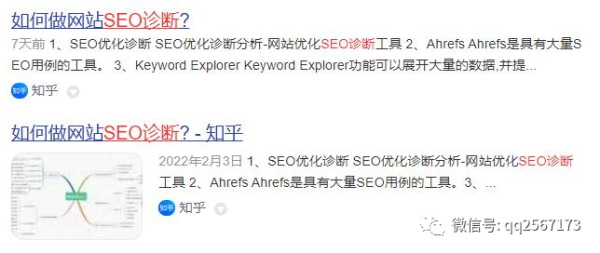 百度給予的結果,除了A5SEO診斷官網外,其他的排名全部都是知識類型的內容頁(知乎居多)了。