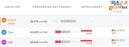 所有的這些都由分組測試(也叫A/B測試)得出的,并不是我個人觀點。使用類似VWO或Optimizely這類分組測試工具,能夠檢測出哪種字體最適合你的讀者,哪種方案更合適。