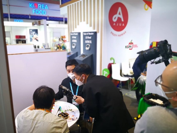 展會期間為了使參展方和觀眾之間更進一步的溝通,現場將有韓國各大參展企業代表們進行產品講解。本次中國食品土畜進出口商會進口食品公共服務平臺官方自媒體“小進說”與aT合作,通過直播走訪現場眾多韓國參展企業,在線的企業采購商觀眾突破2000家,通過2個小時的深度探館和報道,一一展示并介紹韓國食品,讓在線觀眾們更加直觀地了解韓國食品的特色。
